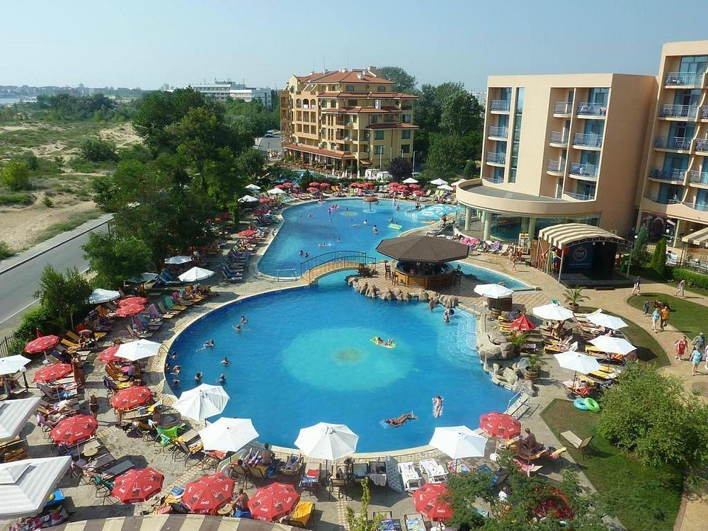 Saulėtas krantas. Erdvus, modernus, švarus viešbutis. 388 kambariai, du barai, vienas viduje kitas prie baseino. Gultai skėčiai prie baseino nemokami, rankšluosčiai depozitas 40lv., parkingas mokamas, seifas mokamas 40lv./savaitė. Biliardas, stalo tenisas, animacija vyksta kasdien. Nemokams wifi, sporto salė nemokama. Yra mini akvaparkas vaikams. Labai gyvas viešbutis, šeimos su vaikais, groja muzika lauke. 200m paplūdimys. Prie vaikų baseino užkandžių baras. Viešbutį renkasi skandinavai, lenkai, rumunai, čekai, vokiečiai, bulgarai. Renovuotas 2018 m. Family room Sea view kambariai iš dviejų miegamųjų, bet be durų, dvi vonios, viena vonia kita dušas. Tikrai geras viešbutis.