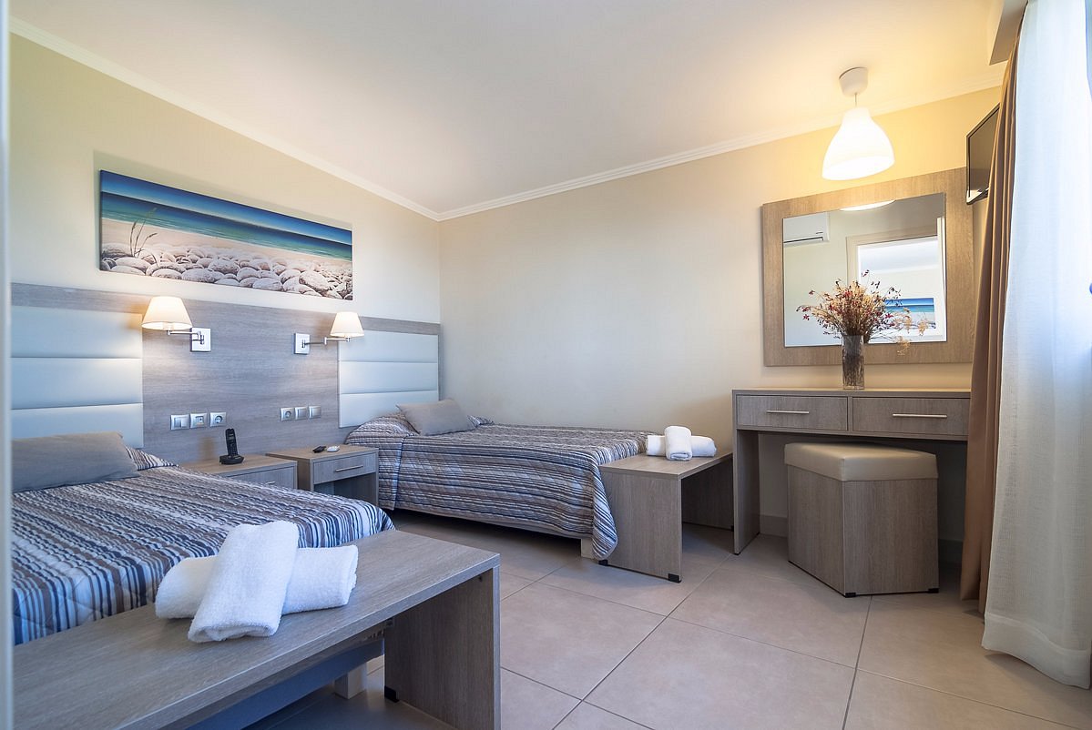 Mesongi miestelyje, kur yra kavinukių, parduotuvėlių. Tvarkinga, švaru, baldai nenutrinti. Aptarnavimas greitas. 500 m iki miestelio. Paplūdimio rankšluosčiu neturi, gultai mokami. 6 EUR gultas. 2.5 EUR rankšluostis. Superior - renovuoti prieš 4 m. Superior plus - renovuoti. Sea view matėm. Skirtumo nėra didelio labai, vos naujesnė vonia tarp superior ir superior plus. Family - visi su dviaukštem. Atrodo taip pat kaip superior, dydis toks pats, kaip superior tik dviaukštė šalia. Paplūdimys geras. Yra auto nuoma. Kalneliai dideli 6 EUR žmogui per savaitę. Mažiems maži kalneliai nemokamai.