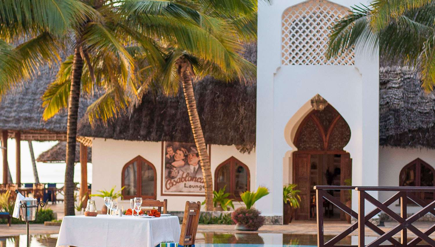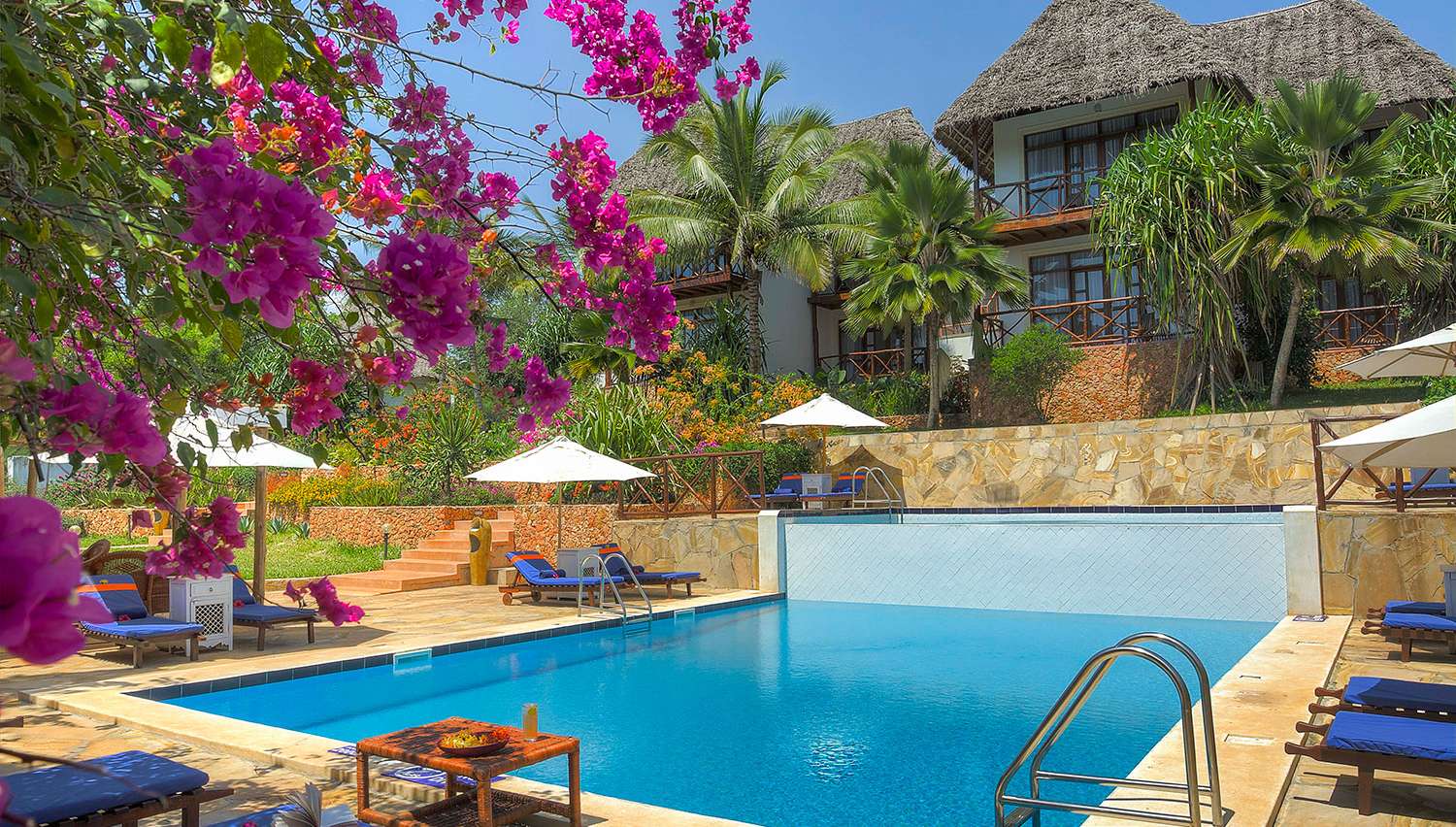 Priklausantis prestižinei „Bluebay Hotels Zanzibars“ viešbučių grupei, įsikūręs prie nuostabiai gražaus paplūdimio su pudros smulkumo smėliu bei turkio spalvos vandenynu. Jo pavadinimas siejamas su legendiniais Omano sultonais, kurie valdė Zanzibarą kelis šimtus metų. Jis buvo įkurtas iš nedidelio viešbučio „La Villa Beach Club“, kurio rami atmosfera buvo išsaugota ir „Bahari“ dalyje. Įspūdinga architektūra su apvaliais nameliais, lyg iš pasakos, atogrąžų sodas bei tradiciniai personalo kostiumai pabrėžia Afrikos atostogų egzotiškumą.