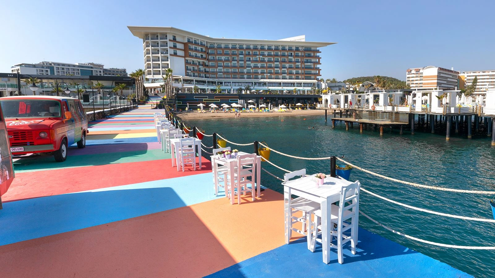 Viešbutis įsikūręs ant jūros kranto. Šiuolaikinė architektūra, stilingas dizainas. Yra lauko ir vidaus baseinai bei privatus paplūdimys. Svečiai gali lankytis vandens pramogų parke, žaisti biliardą, stalo tenisą ar smiginį bei pasimėgauti įvairiomis kitomis viešbutyje siūlomomis pramogomis. Yra vandens kalneliai, vyksta animacija bei vakaro pramogos, diskoteka. Rekomenduojamas šeimoms ir poroms.