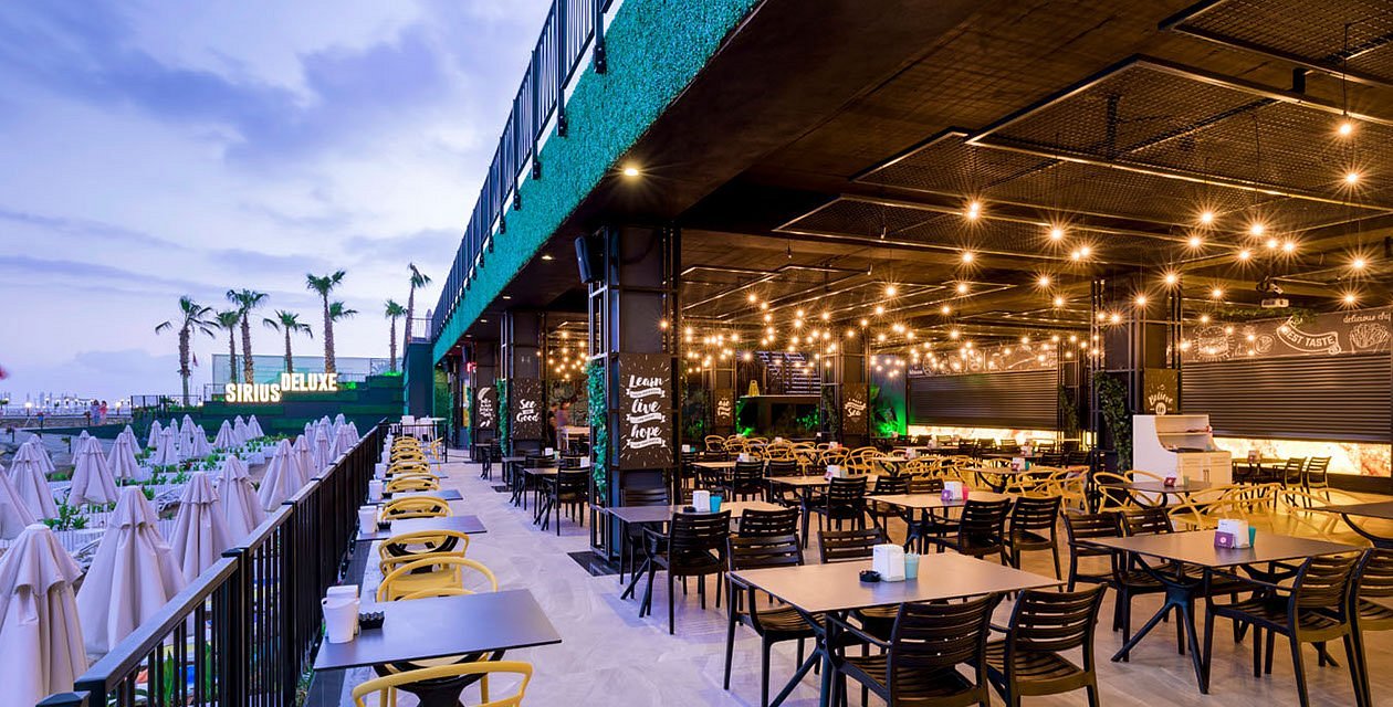 Viešbučio teritorijoje: Pagrindinis restoranas, 3 a`lacarte restoranai, 3 barai, Atviras baseinas, Uždaras baseinas, Prie baseino: skėčiai, gultai – nemokamai, Bevielis internetas visoje teritorijoje, Konferencijų salė (už papildomą mokestį), treniruoklių salė, smiginis, animacija, vakaro renginiai, gyva muzika, diskoteka, vandens kalneliai.