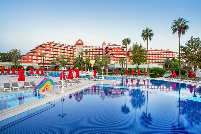 Gerai vertinamas 5* viešbutis, apsuptas sodo, įsikūręs šalia smėlio paplūdimio. Elegantiškas ir stilingas interjeras, šviesūs numeriai, erdvi teritorija. Svečiai gali rinktis tarp 6 barų ir 5 restoranų, kuriuose yra patiekiami skanūs pasaulio virtuvės patiekalai. Viešbutyje yra vandens parkas su 8 kalneliais, SPA centras, kuriame už papildomą mokestį galima mėgautis sveikatingumo paslaugomis. Siūloma daug pramogų tiek suaugusiems, tiek vaikams. Organizuojamos aktyvios, sportinės pramogos, vyksta šokių šou, gyvos muzikos pasirodymai, karaoke vakarai, diskotekos. Mažiesiems yra įrengti keli mini klubai, žaidimų aikštelė bei žaidimų kambarys, 2 atskiri baseinai. Viešbutis puikiai tiks atostogoms su šeima. Viešbutyje viešėjusių svečių atsiliepimus rasite čia: Tripadvisor komentarai »