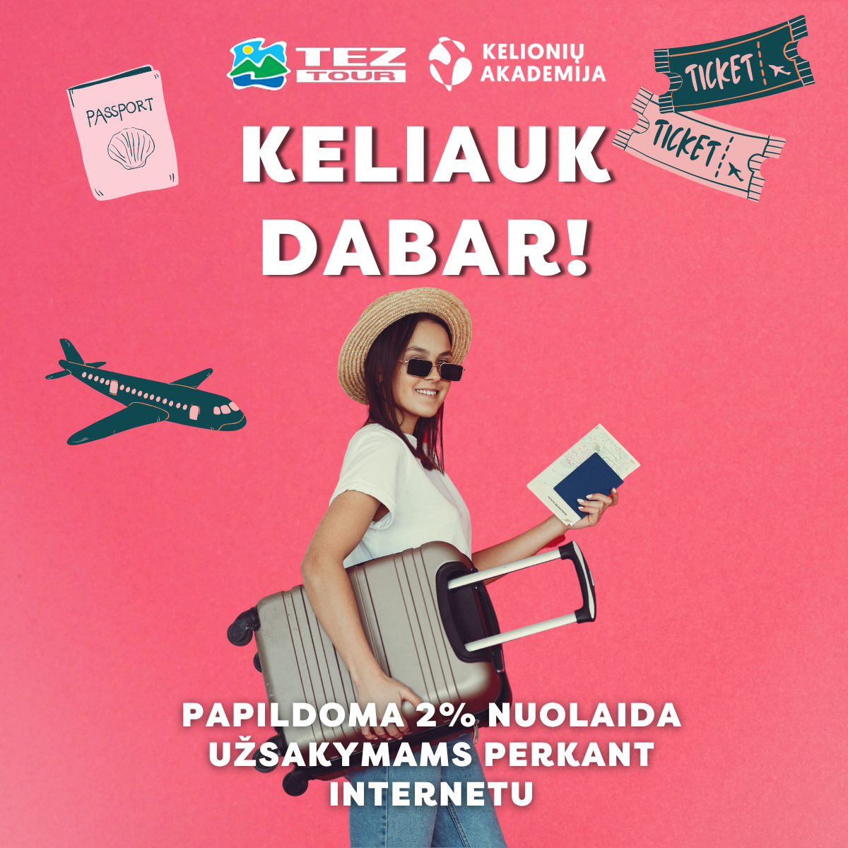 2. PAPILDOMA 2% NUOLAIDA TEZ TOUR KELIONĖMS PERKANT INTERNETU!