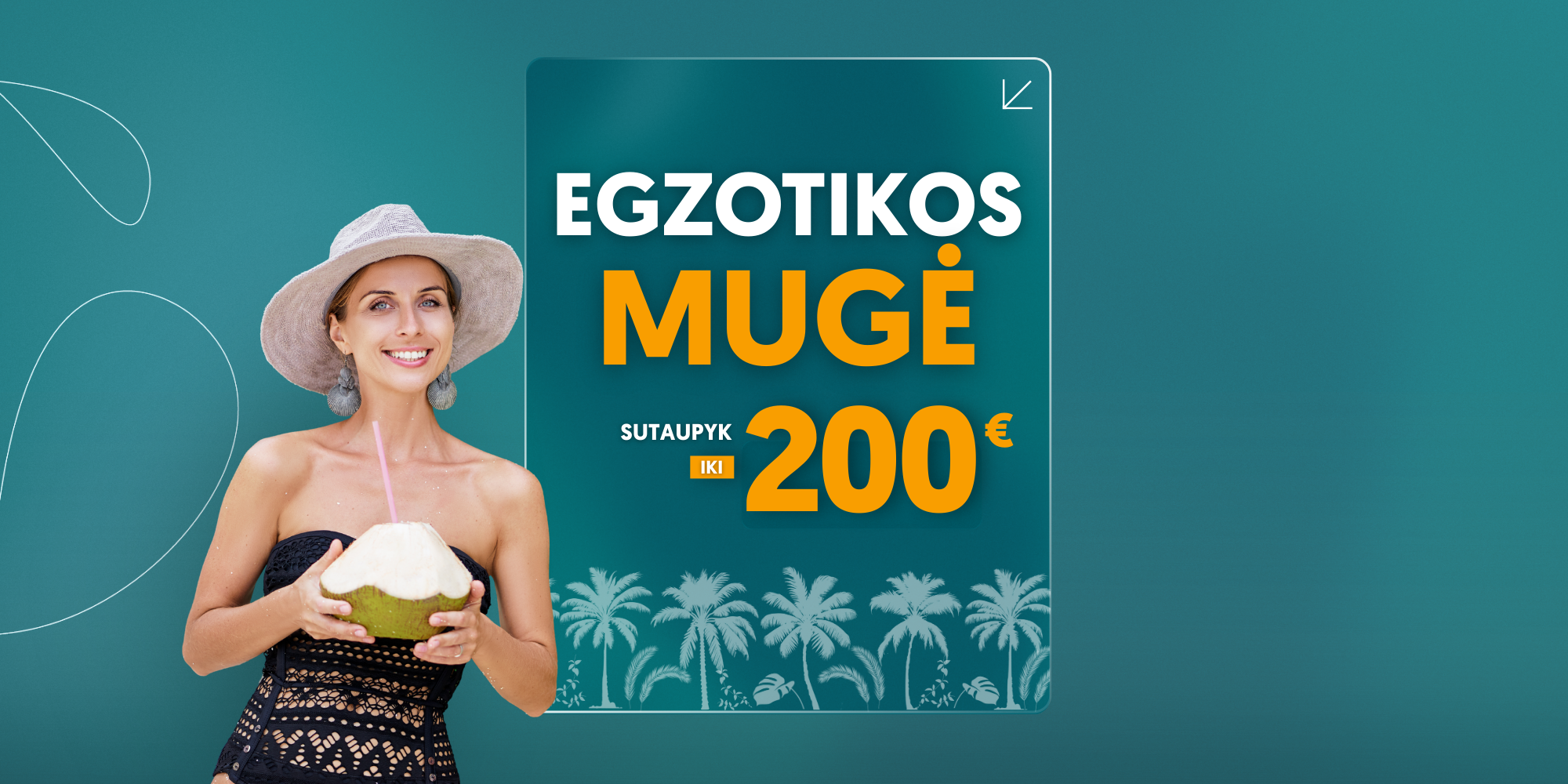 ATOSTOGŲ MUGĖ! Sutaupyk iki 40% poilsinėms atostogoms! Geras metas rinktis savo svajonių kelionę! Perkantiems anksčiau - didesnis viešbučių pasirinkimas už mažesnę kainą!