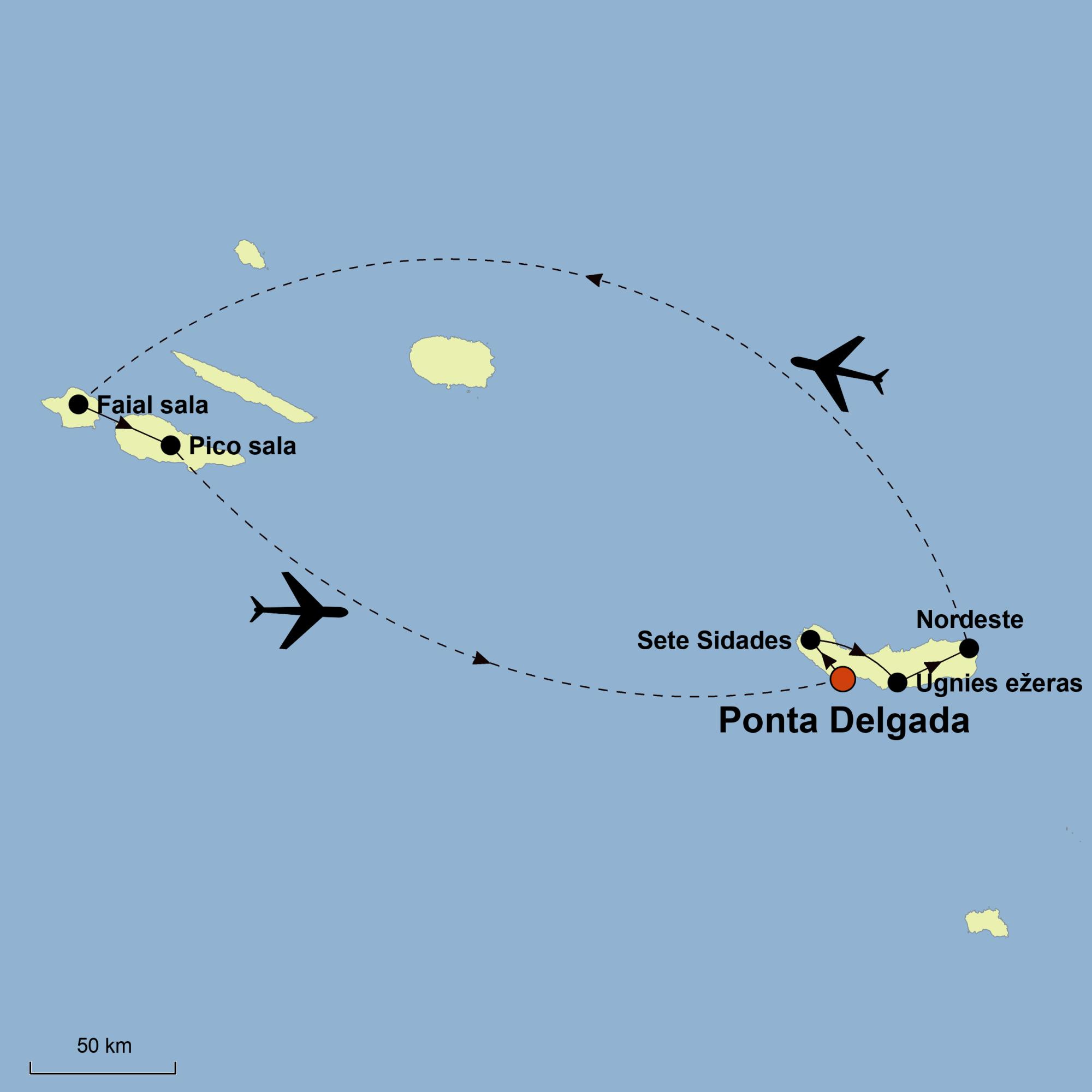 • Lėktuvo bilietai Vilnius – Ponta Delgada – Vilnius (su persėdimu) 520 Eur/asm. su registruotu 23 kg/asm. bagažu;