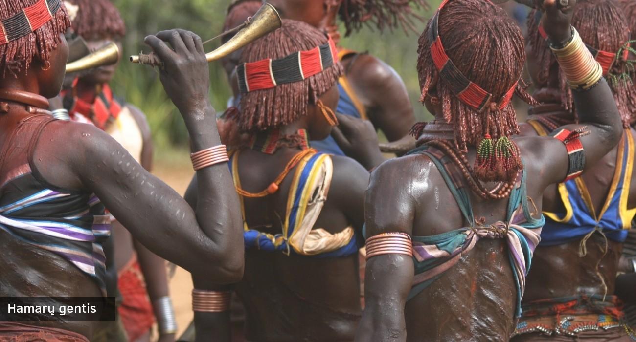 Šią dieną pradėsime kelione į Omoratę – atokų miestelį prie didingos Omo River upės. Čia vietine valtimi persikelsime į kitą krantą, kur mūsų lauks pažintis su gelebų (Daasanach) gentimi. Tai pusiau klajokliška bendruomenė, gyvenanti itin atšiauriomis sąlygomis, tačiau išsaugojusi savitą gyvenimo būdą ir tradicijas. Lankydamiesi jų kaime stebėsime kasdienį gyvenimą, susipažinsime su jų buitimi, o ypatingą dėmesį patrauks išraiškingos, kūrybiškos galvos puošmenos, gaminamos iš įvairių natūralių ir perdirbtų medžiagų. Turėsime progą geriau suprasti šios genties ryšį su aplinka bei jų gebėjimą prisitaikyti prie nuolat kintančių gamtos sąlygų. Vėliau grįšime atgal į Turmį, kur mūsų lauks pažintis su hamarų (hamerų) gentimi, daugiausiai besiverčiančių ganykline gyvulininkyste. Jie žinomi dėl unikalios šokinėjimo per bulių praktikos, kurios metu genties berniukai įšventinami į vyrus. Turėsime galimybę išvysti šią unikalią ceremoniją ir iš arčiau susipažinti su hamarų genties kultūra. Vakarienė ir nakvynė nameliuose Turmyje.