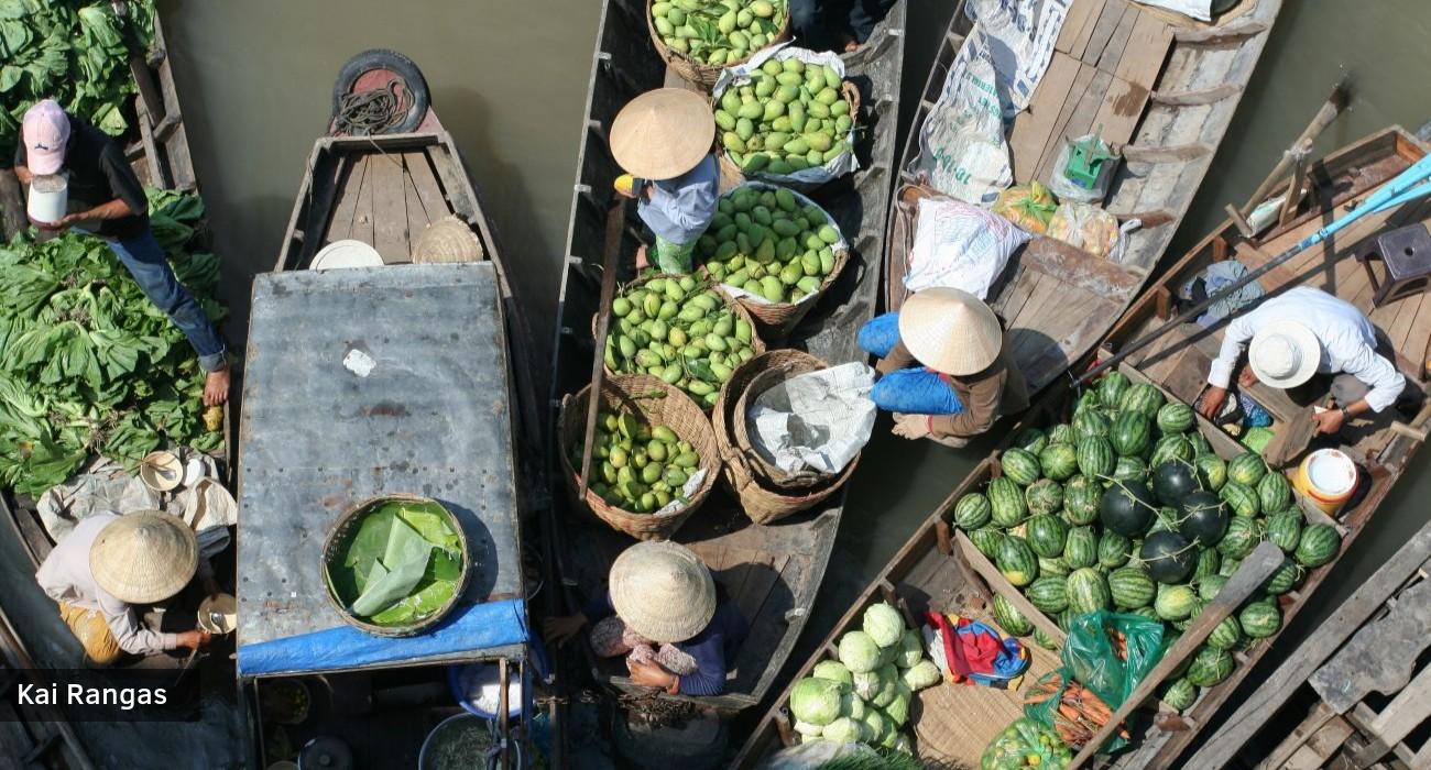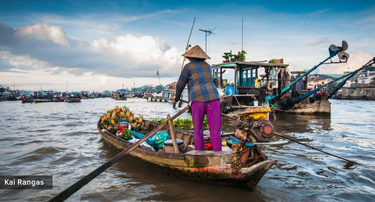Po pusryčių leisimės į kelionę laivu į Kai Rangą (Cai Rang) – didžiausią ir įspūdingiausią plaukiojantį turgų visame Mekongo deltos vandens kelių tinkle. Šimtai valčių, prikrautų vietinių produktų, susiburia į gyvą ir spalvingą labirintą. Iš visų pusių prie mūsų priplaukia valtys, siūlančios vaisius, daržoves, augalus, maistą ir kitus gaminius. Prekeiviai savo prekes reklamuoja pakabindami jų pavyzdžius aukštai ant bambukinių stulpų, kad pirkėjai galėtų juos lengvai pastebėti iš tolo. Tai puiki galimybė iš arti pamatyti, kaip iš tiesų vyksta prekyba Mekongo regione. Vėliau keliausime į Mi To (My Tho) – klestintį miestą Mekongo deltoje. Atvykę leisimės į išvyką laivu, kurios metu stebėsime kasdienį gyvenimą Mekongo upėje. Vėliau vyksime į Fenikso salą, kur aplankysime vietinį kaimą, susipažinsime su šeimos dirbtuvėmis, kuriose gaminami rankdarbiai ir kokosų saldainiai, bei pasigrožėsime vešliais tropiniais sodais. Toliau keliausime arklio traukiamu vežimu į tradicinį deltos namą, kur paragausime naminės medaus arbatos ir pasimėgausime mėgėjiška liaudies muzika. Pratęsime kelionę vietiniu laiveliu per siaurus kanalus ir upės intakus, kad toliau susipažintume su upės gyvenimu. Pietums paragausime tradicinių šio regiono patiekalų: žuvies „dramblio ausis“ (Elephant Ear Fish), karšto puodo (Hot Pot) ir kitų. Nakvynė viešbutyje Hošimine.