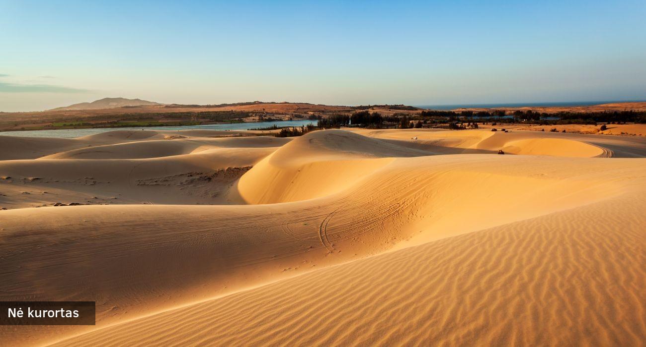 Nė kyšulys (Mui Ne) – tikras tropikų rojus ir atgaiva sielai. Balto smėlio paplūdimiai, žali pušynai ir vakariečiams neįprastų augalų miškeliai bei, žinoma, nuostabiai žydras ir šiltas Pietų Kinijos jūros vanduo – ko gi daugiau reikia pasakiškam poilsiui? Nepraleiskite progos susipažinti su vietiniais – čia gyvena smalsūs, gyvybingi ir bendrauti norintys vietnamiečiai, kurie tikrai noriai padės pažinti savo kultūrą ir drąsiai pasakos įvairiausias vietnamietiškos kasdienybės istorijas. Drąsiai leiskitės į pažintį su Vietnamo virtuve ir kulinariniais šedevrais. Netoliese yra raudonojo ir baltojo smėlio kopos, kuriose galima pasivažinėti keturračiais motociklais*. Mėgstantys aktyvų poilsį galės išbandyti kaitavimą ar burlentes* – tai čia ypač populiaru. Taip pat – pasilepinti ir išmėginti šių kraštų SPA ir kitas sveikatingumo procedūras bei masažus*. Nakvynės viešbutyje Nė kurorte.