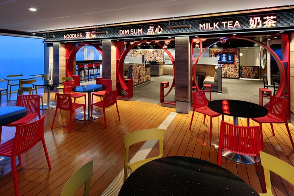 Maitinimas ir gastronomija: laive veikia daugiau nei 18 restoranų ir barų, siūlančių: tarptautinę virtuvę, itališką, japonišką ir amerikietišką maistą, jūros gėrybes ir vegetariškus patiekalus (specializuoti restoranai už papildomą mokestį). Be to, galite mėgautis: puikiais desertais, kokteiliais ir kavos patirtimis, greitu maistu ar bufetais visą dieną, specialiais teminiais vakarienės šou restoranuose.