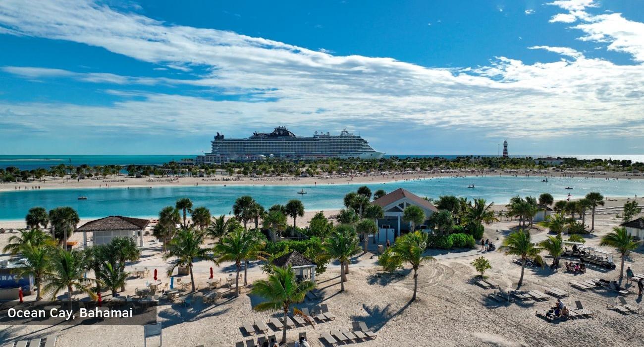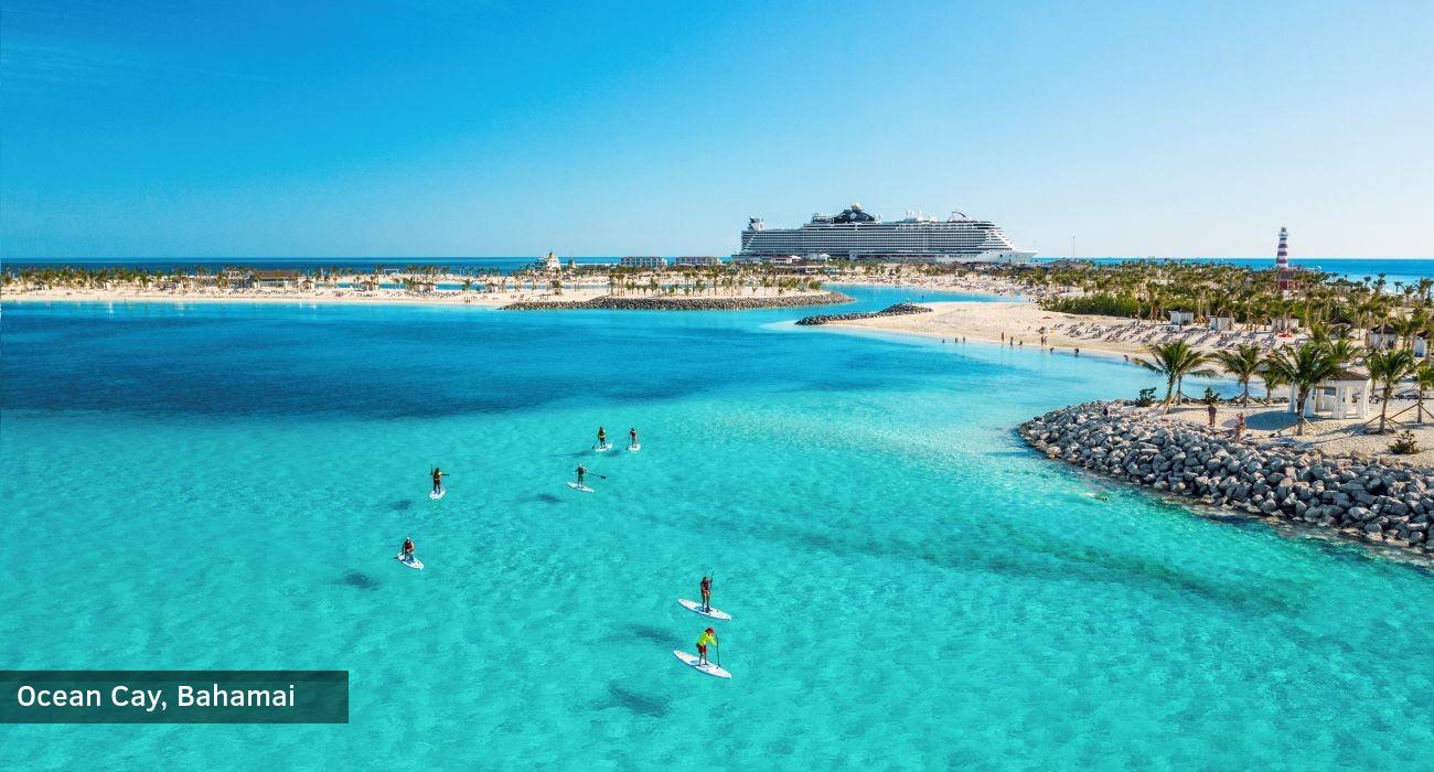 Sala priklauso Bimini salų grandinei ir yra vakarinėje Bahamų dalyje. MSC kompanija padėjo šiai šaliai sukurti ekologišką rojų ir išskirtinę vietą poilsiauti harmonijoje su gamta – „Ocean Cay MSCMarine Reserve“. Čia atrasime septynis nuostabius paplūdimius su skirtingais restoranais ir barais (už papildomą mokestį), didžiulę lagūną, tipiškus Bahamų kaimų namus ir daug vandens pramogų. Už papildomą mokestį galėsime panardyti, paplaukioti baidarėmis ar apžiūrėti salą pakilus parašiutu iš valties. Čia pramogos nesibaigs iki vėlumos, o laivo personalas užtikrins, kad laiką leistume smagiai ir be rūpesčių. Pavalgyti bet kuriuo metu galime grįžti į laivą ar pasimėgauti maistu pačioje saloje esančiame bufete. MSC kompanijos siūlomos pramogos (rekomenduojama užsisakyti kuo anksčiau): paviršinio nardymo įrangos nuoma (~34 EUR/asm), turas vandens motociklu (~199 EUR/asm), pasiplaukiojimas irklente arba kajaku (~46 EUR/asm), paviršinis nardymas ir plaukiojimas su rajomis (~117 EUR/asm), skėčio ir dviejų gultų nuoma (~32 EUR). Nakvynė laive.