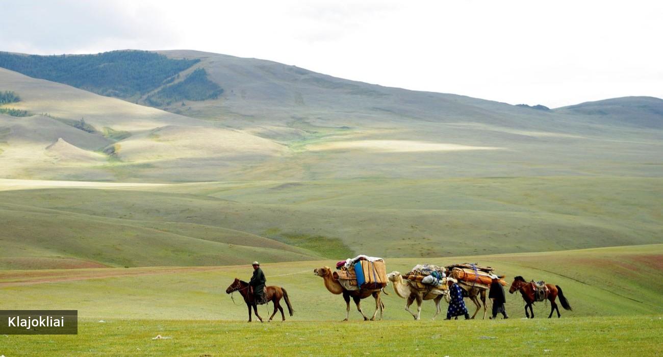 • Josime arkliais bei kupranugariais laukiniame Mongolijos kraštovaizdyje