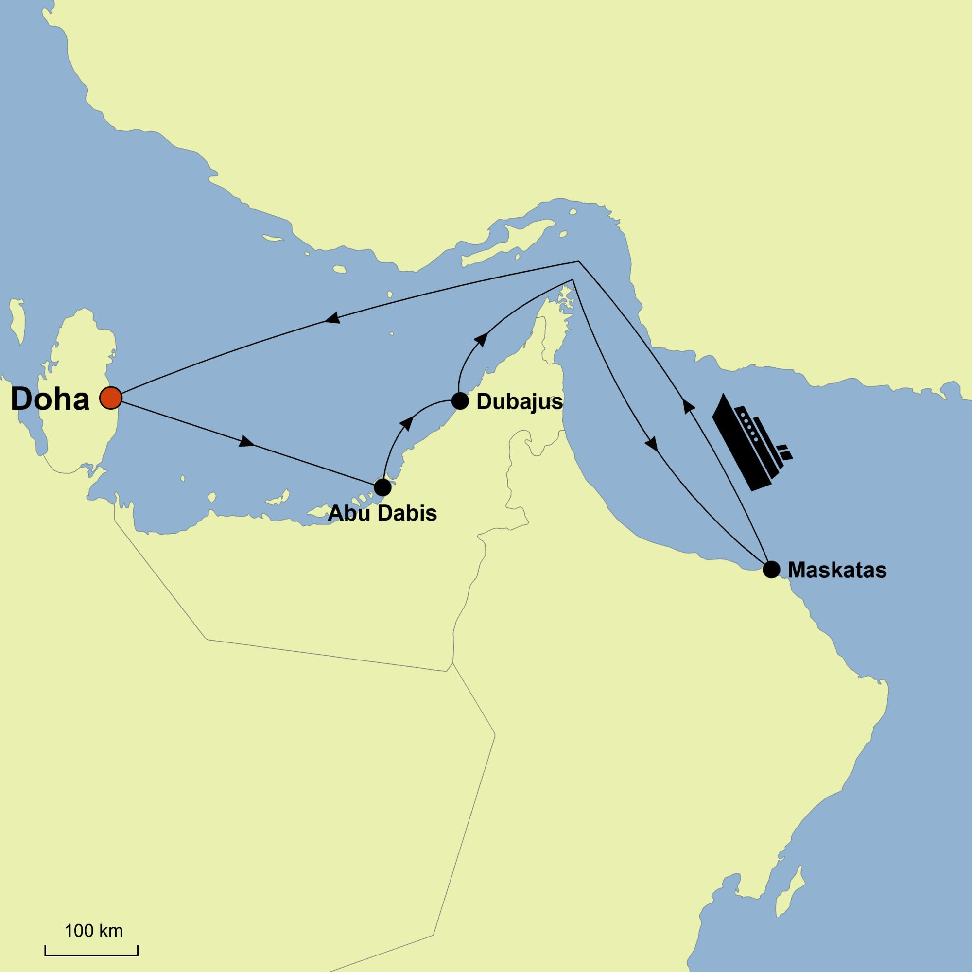 • Doha (Kataras) – futuristinis miestas, garsėjantis įspūdinga įlankos panorama, moderniais muziejais ir architektūros šedevrais;