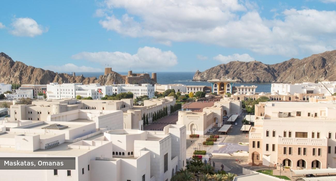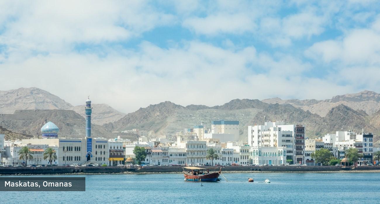 • Maskatas (Omanas) – autentiška Omano sostinė, kur žavi tradicinė architektūra, didžioji Sultan Qaboos mečetė ir istoriniai fortai;