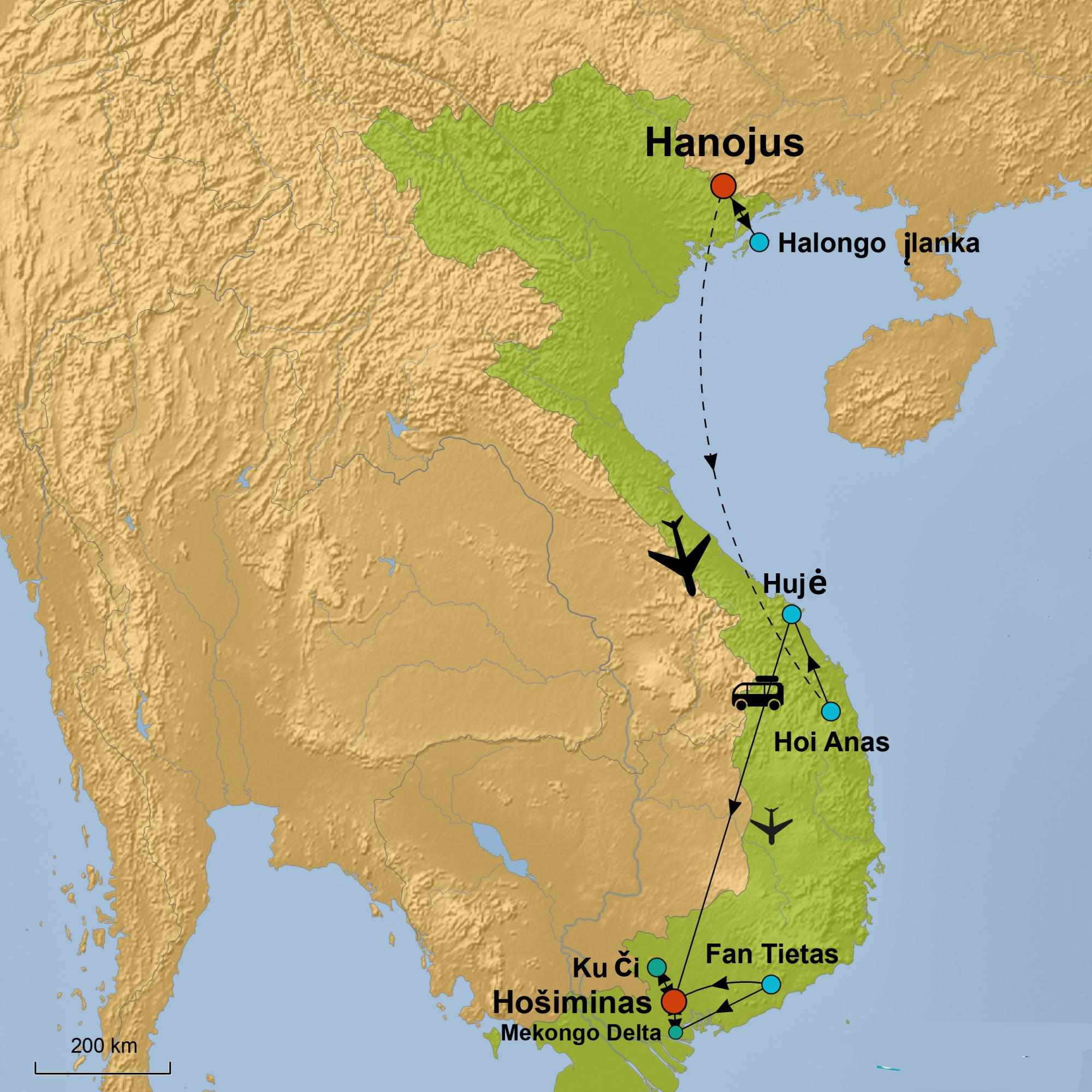 Raudonojo Drakono šalimi vadinamas Vietnamas visiems puikiai žinomas iš istorijos vadovėlių, tačiau to, ką pamatyti, išgirsti, paragauti galima šioje šalyje, neįmanoma nupasakoti žodžiais, parodyti fotografijose ar nutapyti net ryškiausiame peizaže. Senovės užuominomis kvėpuojantys architektūros statiniai, budistų šventyklos, prancūzų kolonijos pėdsakai, šalį nuo sausrų globojančių upių žavesys – visa tai stebina Vietnamo svečius pavydėtinu natūralumu ir paslaptingumu. Tad leiskimės į naujų pažinčių kupiną kelionę!