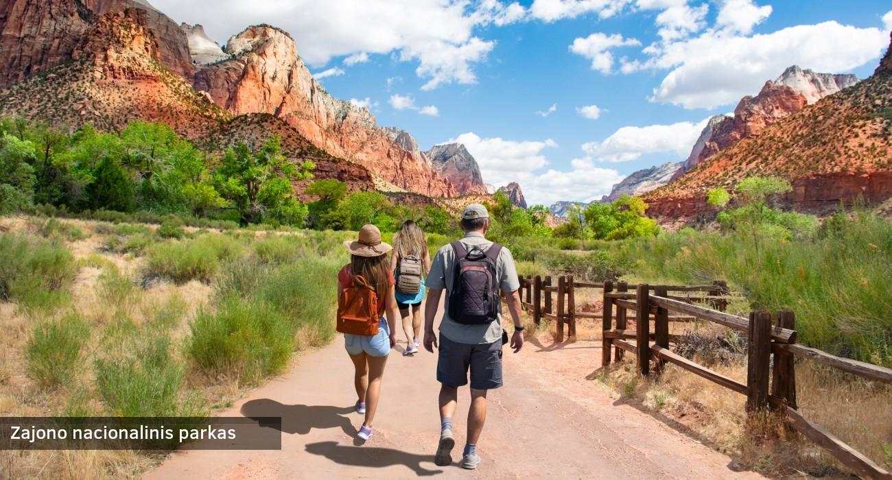 Po pusryčių vyksime į Zajono (Zion) nacionalinį parką. Šis parkas gavo savo pavadinimą iš toje vietovėje apsigyvenusių mormonų. Tokį pavadinimą jie davė teigdami, kad apsilankymas parke yra tarsi religinė patirtis, kalnų didybė ir dykumos tyla verčia jaustis tarsi nugabentam į kitą pasaulį. Šis įspūdingas gamtos parkas garsėja raudonų uolų kanjonais, vingiuotomis upėmis ir įvairiomis žygių trasomis. Parke pasimėgausime trumpu pėsčiųjų taku palei Mergelės upę (Virgin River). Vėlai vakare sugrįšime į Los Andželą.