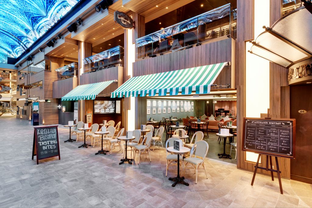 11 restoranų gurmaniškoms kelionėms: nuo pagrindinių restoranų, įskaičiuotų į kainą, iki specializuotų papildomai mokamų. Išbandykite japonišką „Kaito Teppanyaki“, autentišką „Butcher’s Cut“ mėsos restoraną arba pasinerkite į prancūzišką eleganciją „L’Atelier Bistrot“.