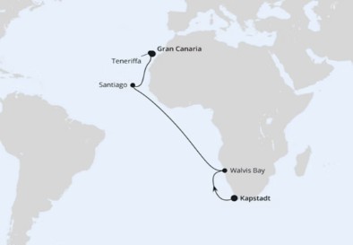 1) 17d/16n kruizas iš Gran Kanarijos į Keiptauną (PAR) su AIDAprima nuo 2027 04 22