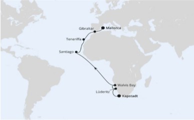 2) 20d/19n kruizas iš Keiptauno (PAR) iki Maljorkos su AIDAstella nuo 2026 03 12