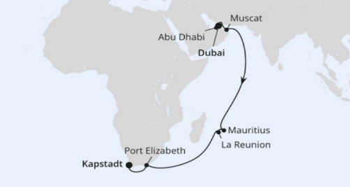 5) 20d/19n kruizas iš Dubajaus į Keiptauną (PAR) su AIDAprima nuo 2027 04 03