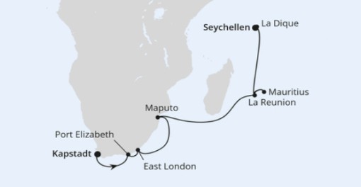 Leiskitės į nepamirštamą kelionę kruizais, kurie derina vokišką kokybę, komfortą ir stilių. Tyrinėkite Afrikos pakrantes nuo Pietų Afrikos Respublikos iki Namibijos, džiaukitės egzotišku Indijos vandenynu, aplankykite Mauricijų, Reunioną, Seišelių salas ir Madagaskarą, pasimėgaukite tropine gamta bei kultūra. AIDA cruises laivai siūlo patogias kajutes, pilną maitinimą su gėrimais, SPA, baseinus ir pramogas visai šeimai. Svajonių kruizą galite pasirinkti vos nuo 975 € asmeniui!