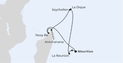 7) 15d/14n Indijos vandenyno kruizas aplankant Reunioną, Seišelius ir Madagaskarą iš Mauricijaus su AIDAblu nuo 2027 12 21 – Kalėdos ir Naujieji Metai!