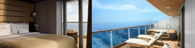 Kaina asmeniui dvivietėje kajutėje Cove Residence su privačia džiakuzi terasoje 16 200 eur/asm