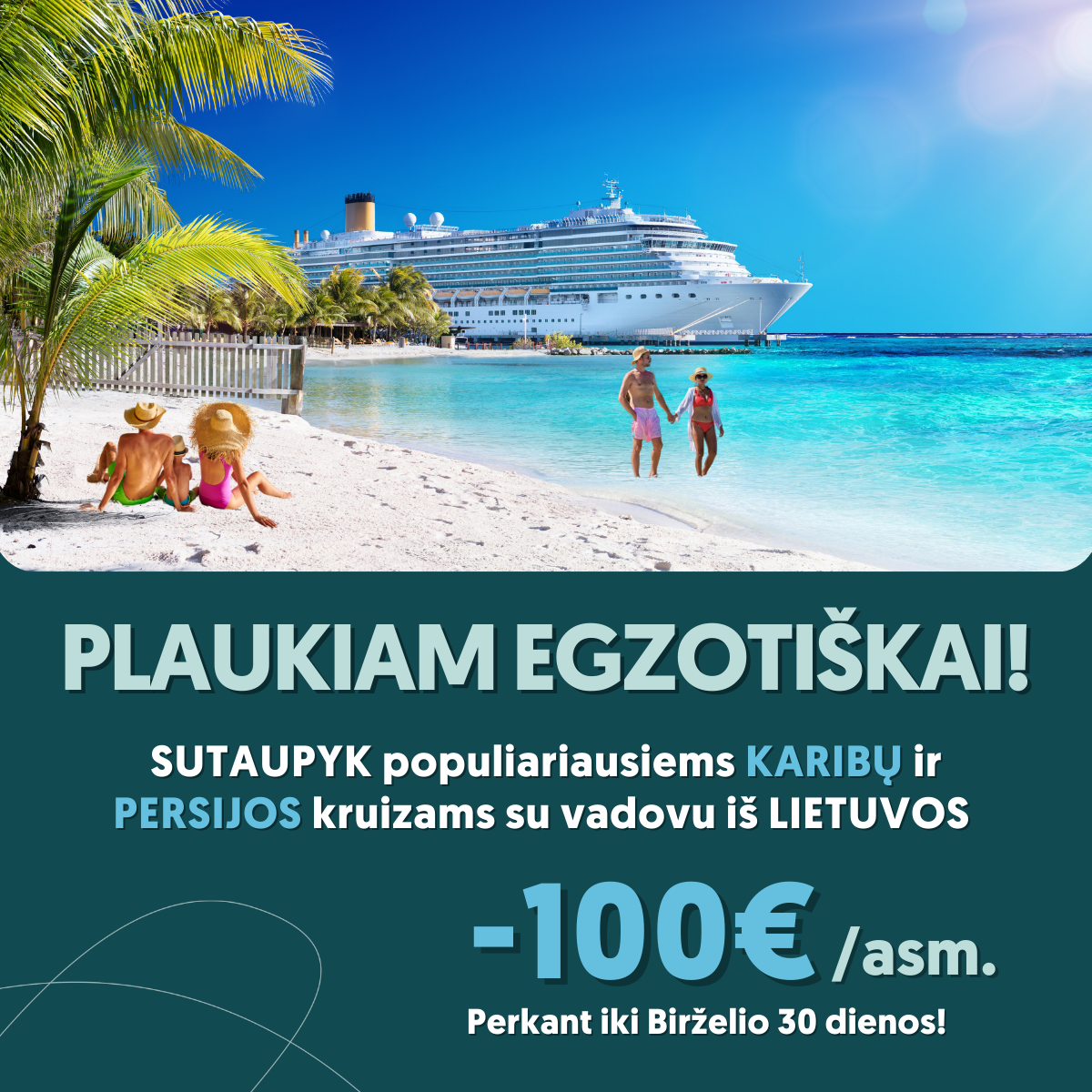 Populiariausi KARIBŲ ir PERSIJOS kruizai su lietuviškai kalbančiu vadovu – PIGIAU! Visą birželį pirk kruizus su 100 EUR/asmeniui nuolaida!