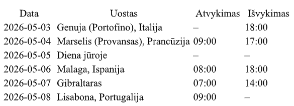 Išvykimas iš Genujos į Lisaboną gegužės 03 d.