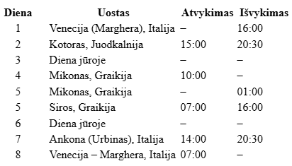 Išvykimas iš Venecijos balandžio 11 ar 18 d.