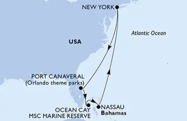 4) 8d/7n Bahamų kruizas su MSC MERAVIGLIA iš Niujorko