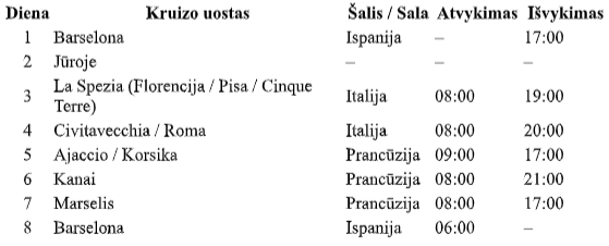 Į kruizo kainą neįskaičiuota: