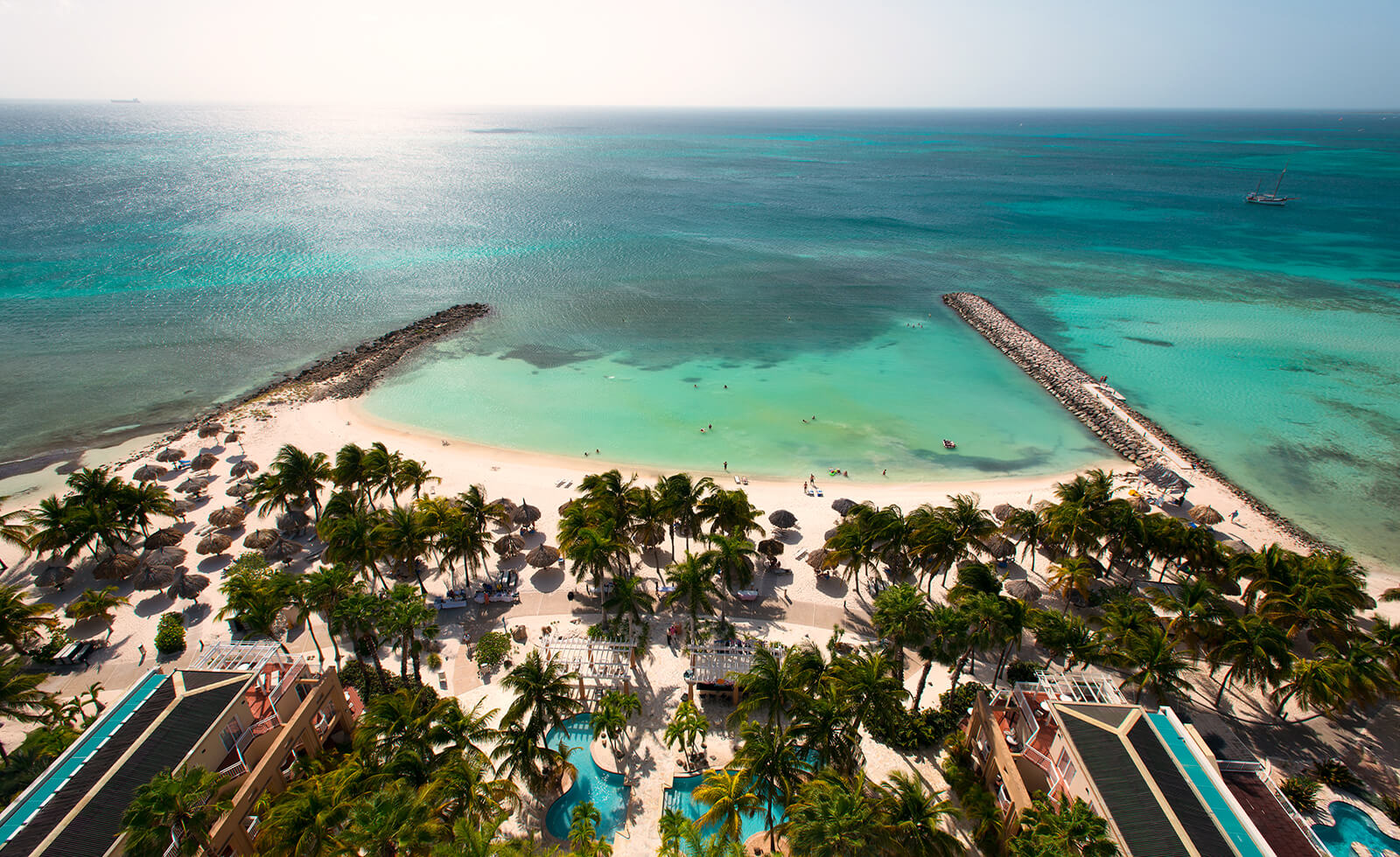 - Położony bezpośrednio przy słynnej Palm Beach z białym piaskiem i zielonymi palmami, oddalony jednak od najbardziej turystycznej części plaży, dzięki czemu panuje tu błogi spokój, czaruje malowniczymi widokami i doskonałą lokalizacją. Zrelaksuj się na leżaku przy jednym z 2 basenów lub w jacuzzi, poczuj swobodę i komfort, którą dają przestronne pokoje z wyposażonymi aneksami kuchennymi oraz skorzystaj z bogatej oferty kulinarnej w stylowych restauracjach na plaży i w hotelu. Przyjazna i profesjonalna obsługa zadba o Twój komfort i dobre samopoczucie, a jeśli zmęczy Cię błogie lenistwo, możesz skorzystać z siłowni lub wybrać się na zwiedzanie rajskiej Aruby. Nie czekaj! Poczuj karaibską magię popijając koktajle i obserwując jak każdego wieczoru słońce magicznie chowa się za horyzontem.