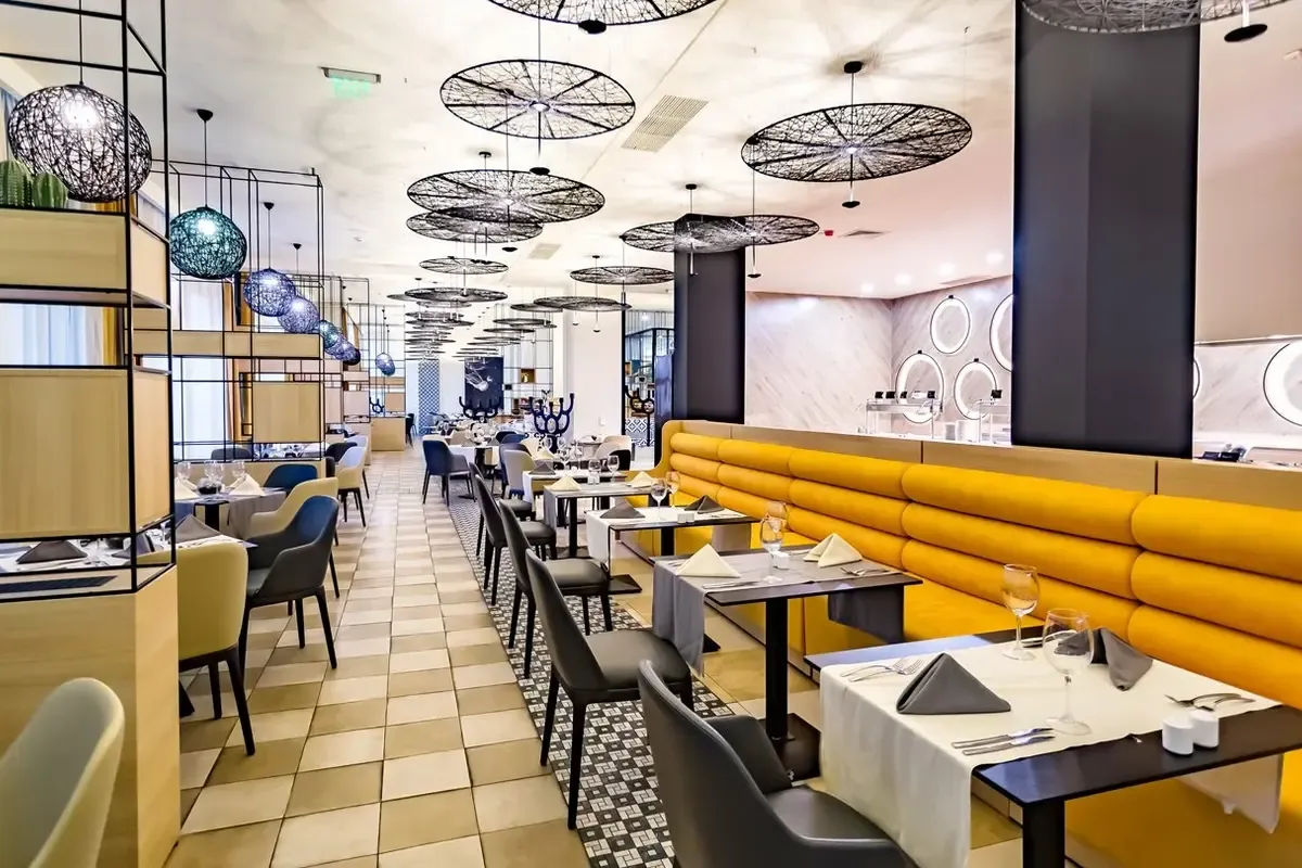 • Maistas ir gėrimai viešbučio restoranuose, kavinėse ir baruose, išvardintuose viešbučio aprašyme, yra tiekiami viešbučio administracijos nustatyta tvarka ir yra mokami priklausomai nuo užsisakyto maitinimo tipo