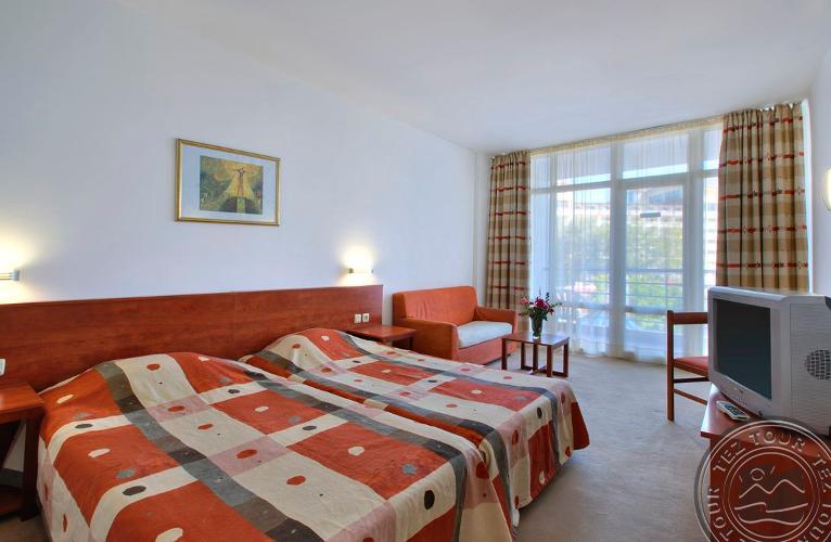 Studio/Suite tipo numeriai (du tipai, apgyvendinama viešbučio nuožiūra: 1) vienas kambarys su 2 viengulėmis lovomis ir 2 išskleidžiamais foteliais arba 2) miegamasis su 1 dvigule lova ir svetainė su išlankstoma sofa, atskirta durimis, maks. 4 asm., 35 m2);