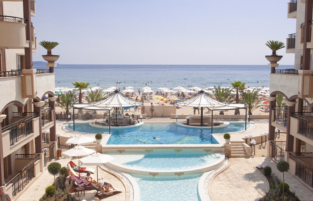 4* viešbutis, įsikūręs Saulėto Kranto kurorte, Bulgarijoje, tiesiai ant smėlio paplūdimio kranto. Kompleksas siūlo apartamentus su virtuvėlėmis ir balkonais, iš kurių atsiveria vaizdai į jūrą arba parką. Viešbutyje yra lauko baseinas su vaikų zona, baras prie baseino ir restoranas. Netoliese rasite įvairių pramogų, restoranų ir parduotuvių. Rekomenduojama poroms ir šeimoms, ieškančioms poilsio prie jūros.