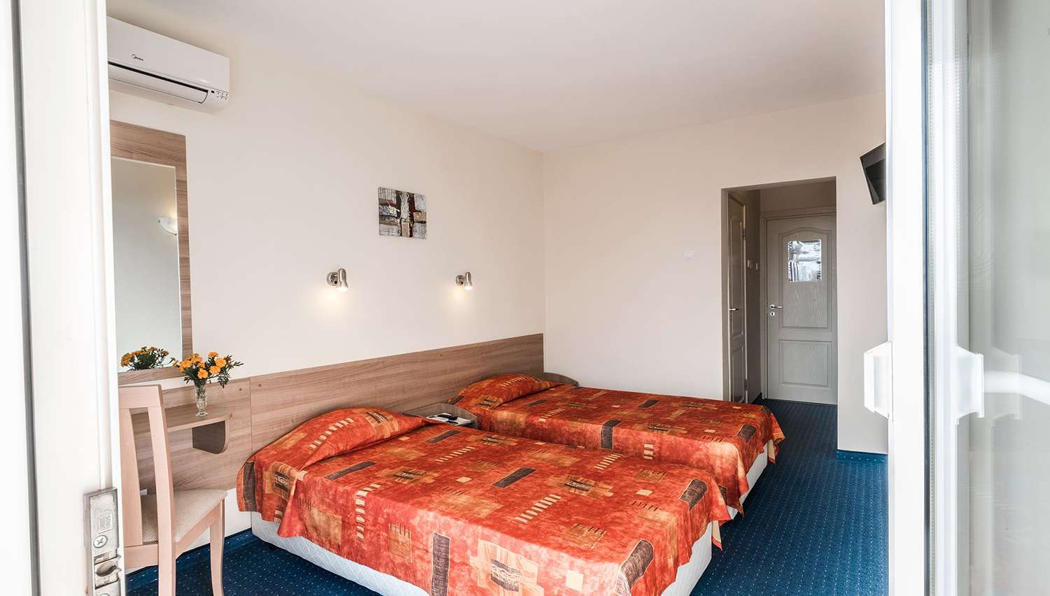 Kambarys atrodė labai gražiai, nesitikėjome. Taip pat nustebino, kiek daug vietos jame buvo ir kad turėjome gražų balkoną. Miegojome labai gerai, nes kambarys labai tylus, net, jei sode žaistų vaikai, juos sunkiai girdėtume. Pusryčiai labai skanūs, su daug pasirinkimų. Kartą valgėme vakarienę - buvo verta. Tiesa, kad reikia palipti laiptais, jei kambarys yra aukščiau nei 4 aukšte, bet tai nėra taip jau sunku, nes laiptai neaukšti. Baseinu nesinaudojome, nes atvykome daugiausia dėl paplūdimio, tad buvo nesvarbu, kad jis mažas. Parkavimas - ne problema: palikome automobilį priešais viešbutį su rašteliu už lango. Apskritai, viešbutis patiko, grįžtume.