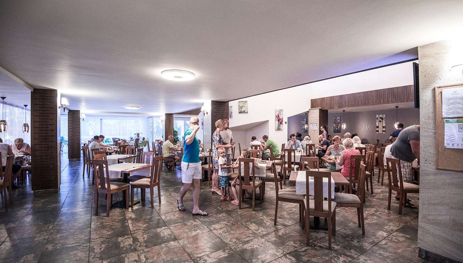 • Maistas ir gėrimai viešbučio restoranuose, kavinėse ir baruose, išvardintuose viešbučio aprašyme, yra tiekiami viešbučio administracijos nustatyta tvarka ir yra mokami priklausomai nuo užsisakyto maitinimo tipo