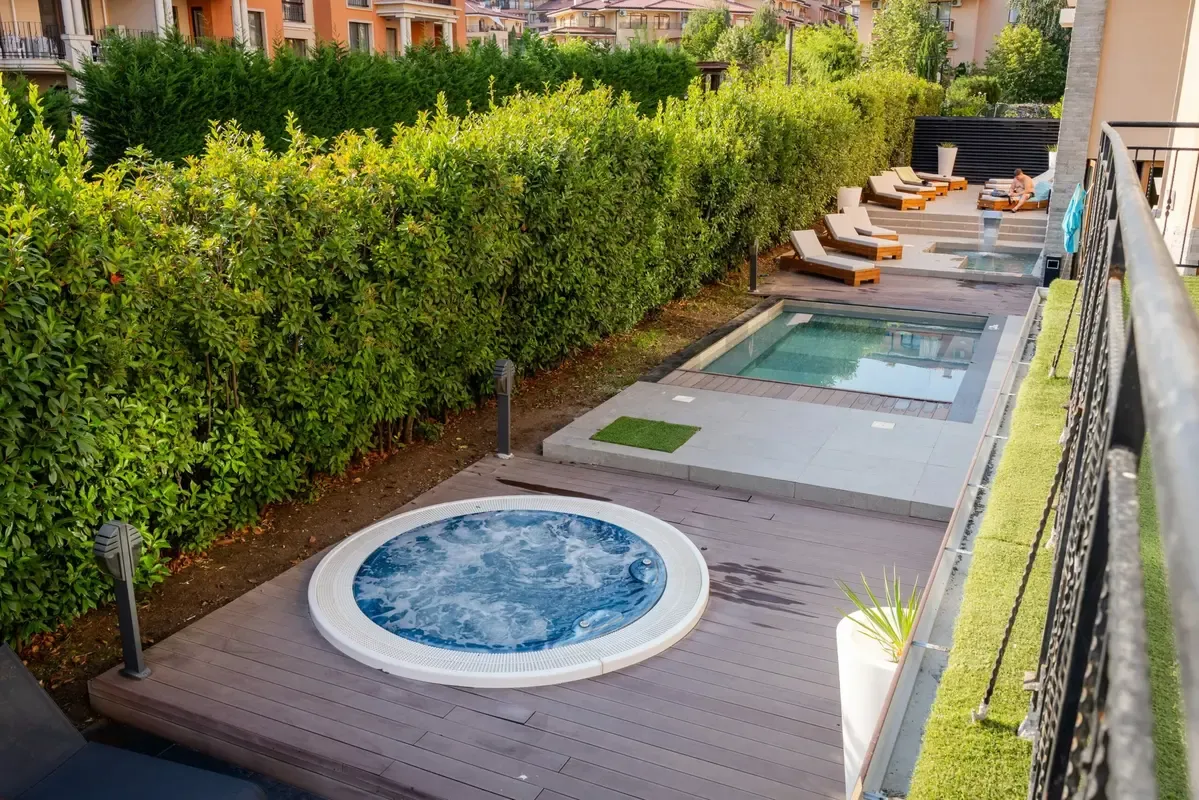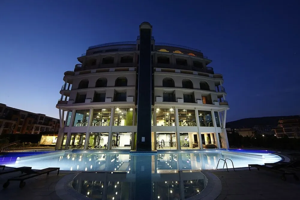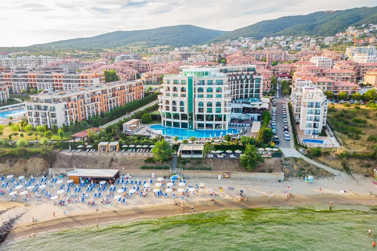 "Grand Hotel Sveti Vlas" yra prabangus viešbučių kompleksas, pastatytas moderniu Viduržemio jūros regiono stiliumi ir įsikūręs paplūdimyje, Yurta rajone, Sveti Vlas. Visuose numeriuose yra oro kondicionieriai, plokščiaekraniai televizoriai, mini barai, arbatos ir kavos ruošimo rinkiniai bei higienos reikmenys. Iš kai kurių numerių atsiveria jūros arba baseino vaizdai. Puiki vieta poroms bei šeimoms.