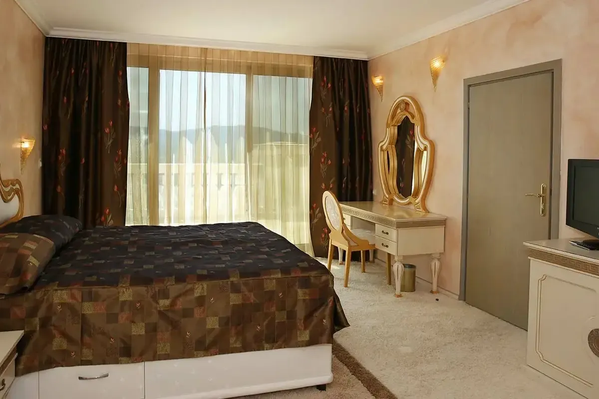 Viešbutis atrodo kaip pilis. Nuošali vieta. Didelė, laiptuota teritorija, bendra su keliais kitais viešbučiais (galima naudotis viskuo). Tradicinis interjeras. Mini bare - vanduo, gaivieji gėrimai, alus (pildoma kasdien). Seifas nemokamas. Standartinis kambarys tradicinio stiliaus, gana senovinis, erdvus. Apartment tipo kambarys su miegamuoju ir svetaine su sofa-lova, vonia ir tualetas įrengti atskirai. Baldai seni, bet yra kavos aparatas. Junior Suite tipo numeris sudarytas iš vieno didelio kambario, yra dvigulė ir viengulė lovos, svetainės zona. Visa kita taip pat. Labai didelis nuosavas paplūdimys su gultais ir skėčiais. Paplūdimio rankšluosčiai nemokami. Paplūdimyje yra užkandžių baras. ~ 45 lv su taksi iki Sozopolio senamiesčio (į abi puses).