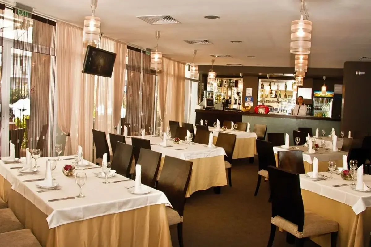 • Maistas ir gėrimai viešbučio restoranuose, kavinėse ir baruose, išvardintuose viešbučio aprašyme, yra tiekiami viešbučio administracijos nustatyta tvarka ir yra mokami priklausomai nuo užsisakyto maitinimo tipo
