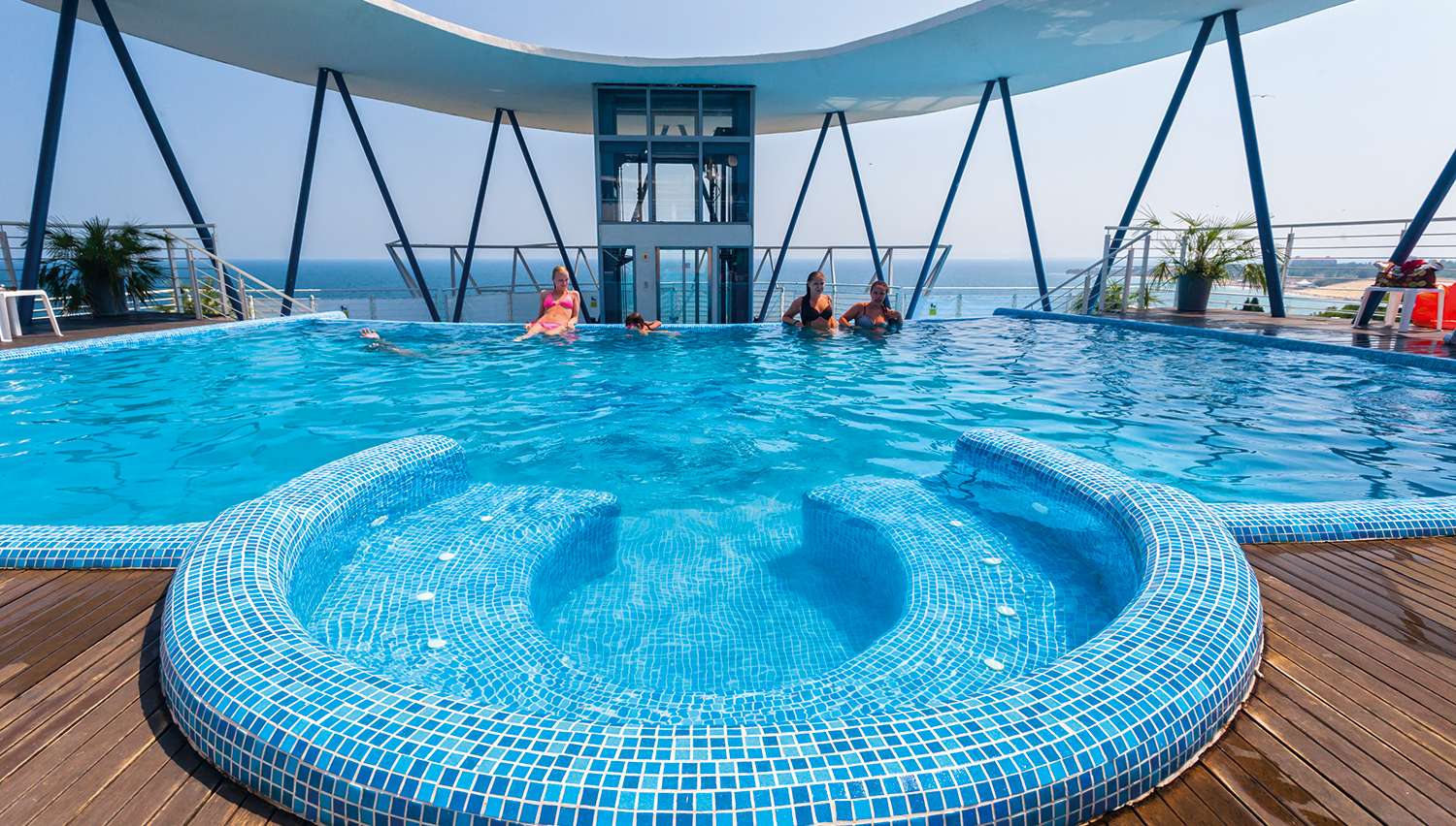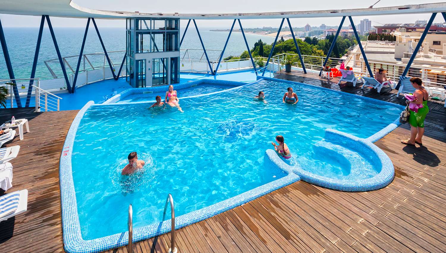 Viešbutis su fantastiškais patogumais ir dėmesingiausiu aptarnavimu. Tačiau tai, kas iš tikrųjų skiriasi, yra nuostabi terasa ant stogo ir baseinas, iš kurio atsiveria įspūdingi jūros, istorinio Nesebaro miesto ir Saulėto kranto vaizdai. Specialiai sukurta suaugusiems, ideali vieta mėgautis nepamirštama viešnage su partneriu ar draugais.