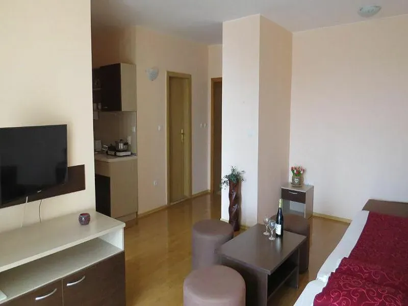 Kurortiniame Sunny beach komplekse, apie 30 km iki Burgaso oro uosto, 2 km iki miesto centro, 200 m iki paplūdimio.