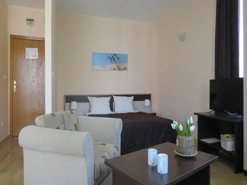 Kelionę ir viešbutį vertinu pakankamai gerai. Buvome užsisakę apartamentus - vienas miegamasis su svetaine ir virtuvėle. Patiko erdvūs kambariai, nemažas balkonas, buvo valoma kadien. Tačiau rankčluosčius ir patalynę keitė tik vieną kartą, ir tai atvykus kitą dieną, nors buvo nurodyta, kad keis du kartus per savaitę. Prašėme registratūroje, žadėjo, bet nepakeitė, tad šešias dienas turėjome naudotis tais pačiais rankčluosčiais. Maitinimas labai neišrankiems keliautojams, patiekalų pasirinkimas kuklus, kasdien visą savaitę praktiškai tie patys keli patiekalai. Baseinas geras, nemažas. Viešbutis neturi savo paplūdimio, tad kasdien teko mokėti prie jūros už kiekvieną gultą ir skėtį po 10 levų.