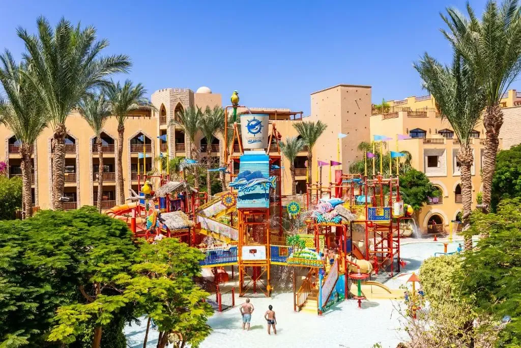 4* viešbutis įsukūręs Hurgadoje. „Grand Waterworld Makadi“ svečiai gali naudotis 9 baseinais, įskaitant vaikų baseiną, vandens parku, „Grand Waterworld Makadi“ paplūdimiu. Čia taip pat rasite restoranų, siūlančių teminius švediškus stalus, grilius ir a La Carte restoranus, kuriuose patiekiami meksikiečių, italų, vokiečių/šveicarų ir tarptautinės virtuvės patiekalai. Taip pat parduotuvių, siūlančių ant grotelių keptus sumuštinius ir įvairius užkandžius. Vakarais svečiai gali mėgautis gyva muzika ir teminėmis vakarienėmis. Viešbutis siūlo įvairias pramogas: jogos pamokas, aerobika ir nardymą. Kurorte taip pat yra vandens parkas, vaikų klubas, vidaus ir lauko žaidimų aikštelės. Viešbutis rekomenduojamas šeimoms