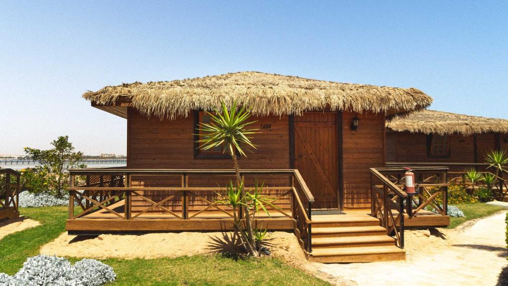Apie 35 km iki Hurgados oro uosto, apie 42 km iki Hurgados miesto centro, Makadi Bei įlankoje, ant jūros kranto.