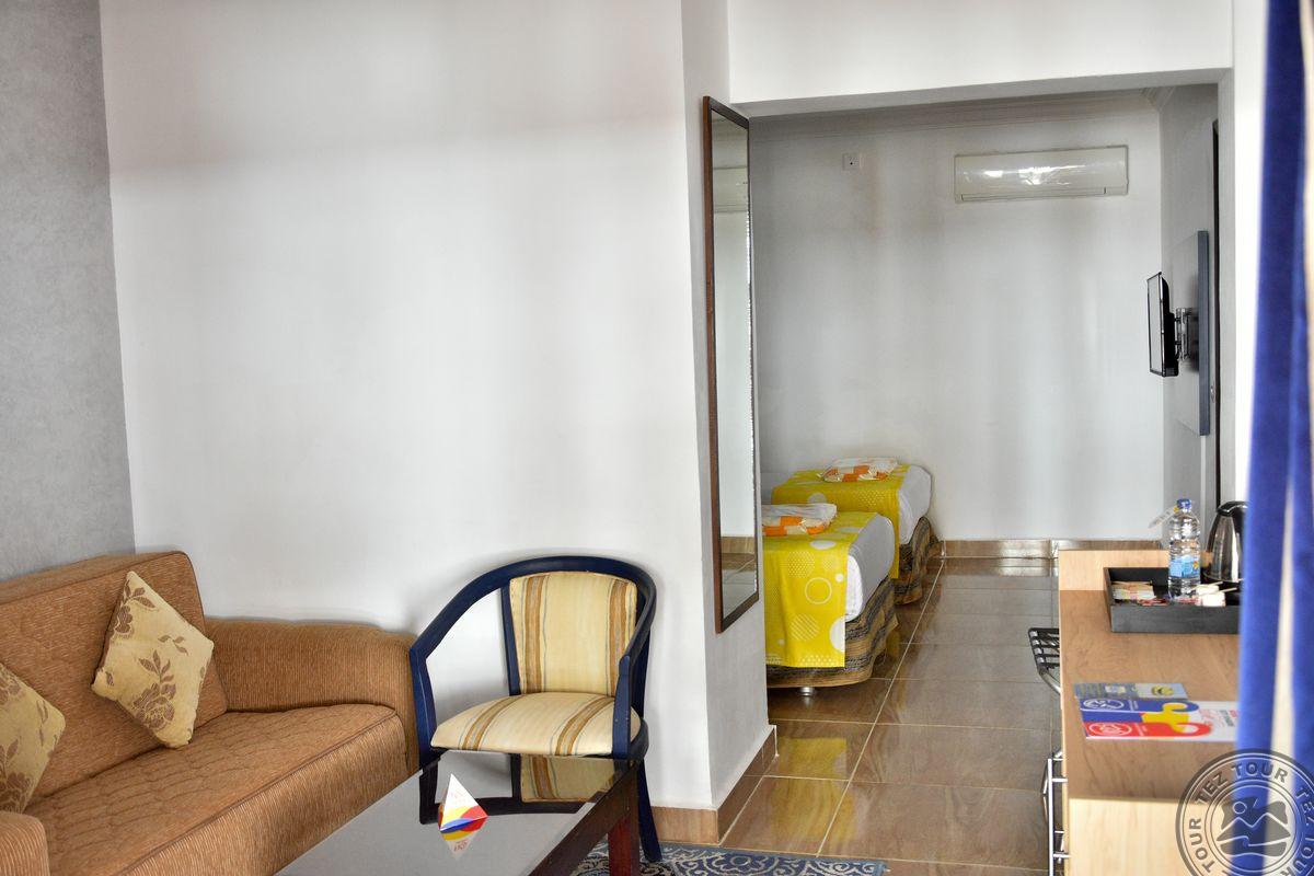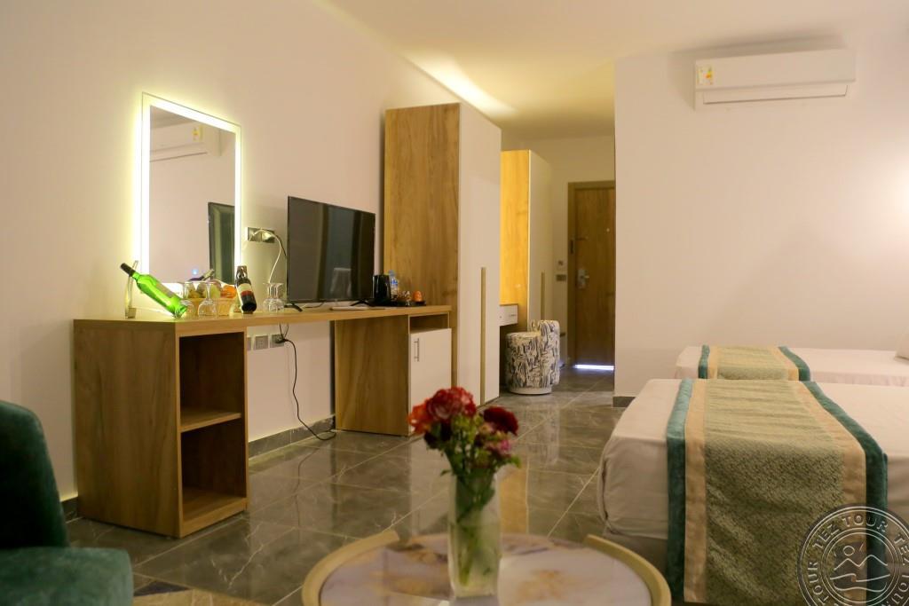 Suite tipo numeriai (su vaizdu į jūrą, vieno kambario arba dviejų kambarių numeris (svetainė ir miegamasis atskirtas durimis), maks. 2+2 arba 3+1 asm., 50 m2). Numeryje pristatoma tik 1 papildoma lova (sofa arba viengulė lova).