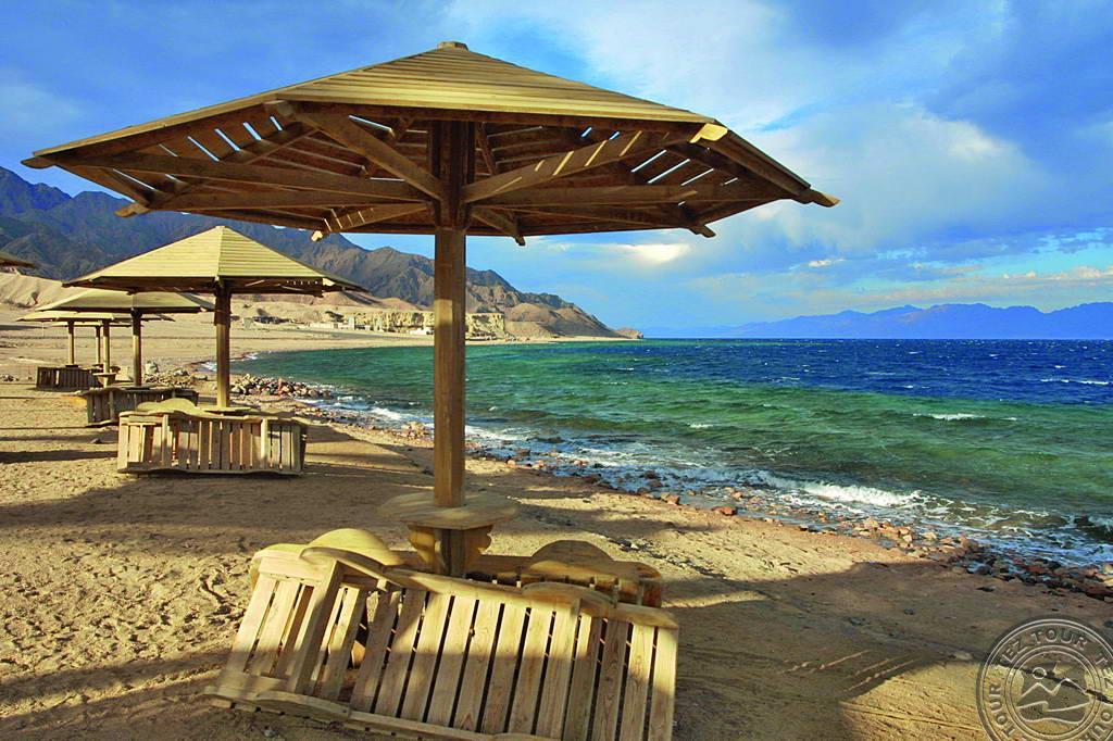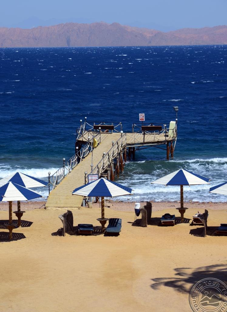 Apie 95km iki Šarm aš Šeicho oro uosto, Dahabo kurorte, ant jūros kranto.