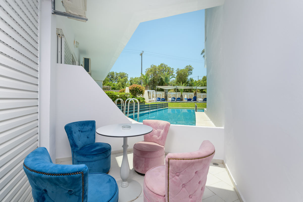 Standard Room tipo numeriai (su vaizdu į baseiną, pagr. lova - dvigulė arba 2 viengulės lovos, maks. 2 asm., 18-20 m2).