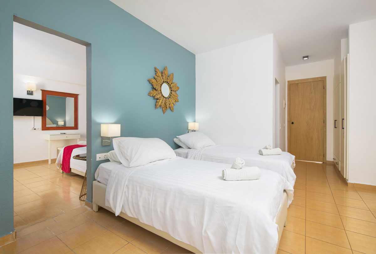 Family Room tipo numeriai (2 miegamieji, pagr. lova - 1 dvigulė lova arba 2 viengulės lovos, papildomai - 2 viengulės lovos, maks. 4 asm., 35 m2).