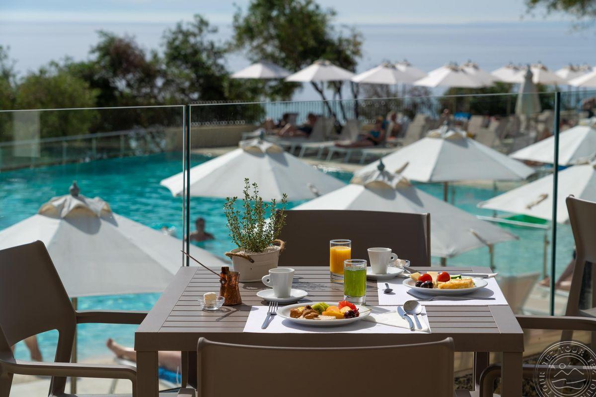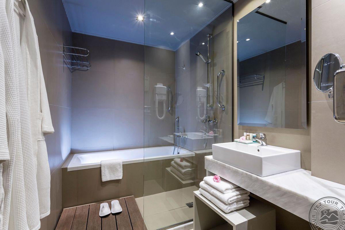 Standart bungalow kambariai - namukai čerpiniais stogais. Max 2+1 (lovytė trumpa). Mes gyvenome standartiniame. Family rooms tik bungalows, max 4. Viena vonia. Superior, deluxe - bungalow ir main building. Superior antras matytas (dušas ir vonia). Išskleidžiama lova didesnė papildoma lova - max 3 suaugę. Nemokamai gultai ir rankšluosčiai paplūdimyje. Family room su durimis, lova ir dvi sofos. Bungalow pastatuose tik. Viešbutis netinka su negalia žmonėms nes nusileidimas į paplūdimį laipteliais ir požemine perėja.  Paplūdimyje yra taverna. Yra viešbučio dušai, tualetas, dalis paplūdimio smulkiais akmenukais, bet yra ir pontonais su gultais. Gyvenome deluxe (būna vynas), yra  chalatai. Didesni nei standartiniai (bungalow ir pagr., pastatė ir taip pat atrodo). Dušas be durų! Geresni ir naujesni Deluxe (tik bus su vaizdu į judrią gatvę ir jūrą). Kiekvienais metais renovuojasi. Kitais metais atidarys naują kambarį. Visur seifas, kondicionierius, visuose kambariuose butelis vyno atvykus, šlepetės yra su chalatais. Wifi visur labai gerai veikia. Rankšluosčiai su depozitu. Vaikų meniu yra. Trumpa linija, gerai vaikams nes nėra banguota. Yra restoranas, kuris vakare tampa a la carte. Dalis nemokamai gultų. Spa yra (su Ai nemokamai sauna ir sporto salė). Yra konferencijų salė. Yra pagalba: golfo automobiliukas, galima išsikviesti ir atvažiuos padės.